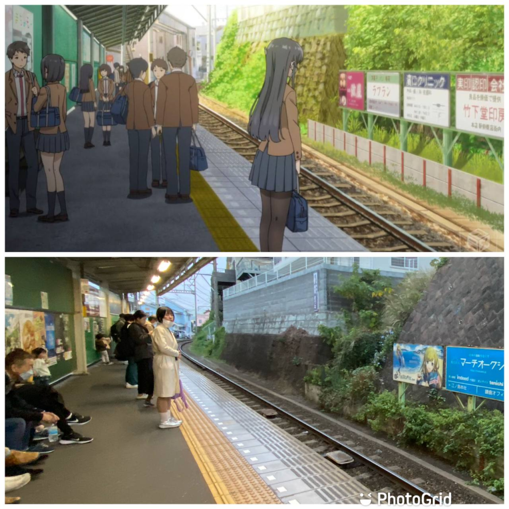 从江之岛坐小田急或者江之电继续往北走就能到藤泽。藤泽位于东海道本线上,可以乘坐湘南新宿线或者上野东京线直达东京都心。在作品里是男主生活的地方,也是男主和麻衣学姐最初相遇的地方。从JR藤泽站出来就能立马看见熟悉的车站口。
