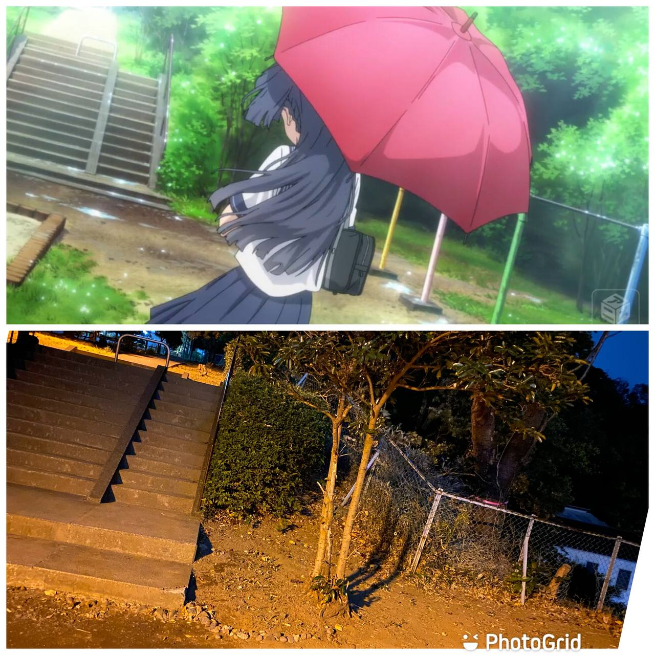 从车站出发步行10分钟不到,就能到达男主与梦中情人相遇(以及与古贺学妹互相踢屁股)的公园。公园旁边的坡道是男主上学的必经之路。