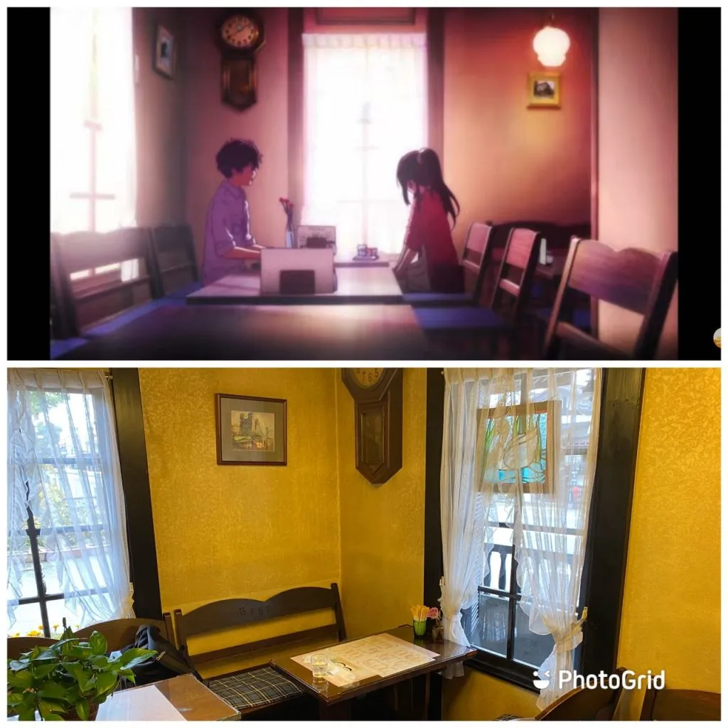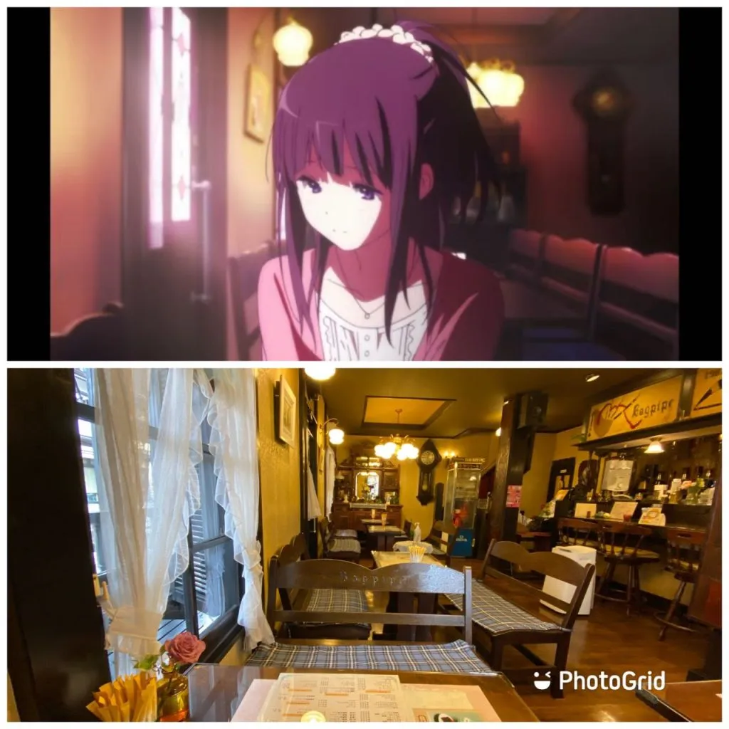 从宫川早市街出来,走5分钟就能到达动漫里出现过的咖啡店。就是在这里,千反田拜托奉太郎调查她舅舅的往事。坐在男主曾经坐过的位置上,仿佛自己也进入了作品的世界,感觉奇妙极了。